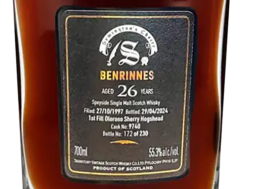 口感:順滑且酒體飽滿。最初的雪莉甜味與濃厚的太妃糖和焦糖堅果的味道相平衡,香料的橙皮增添對比。中味帶有黑櫻桃、肉桂和丁香的味道,淡淡的煙燻味凸顯了其複雜性。