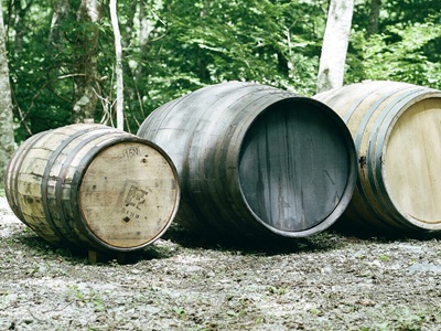 自製木桶 森林熟成除了購入波本桶(Bourbon Cask)與西班牙雪莉桶(Sherry Cask),井川蒸餾廠近年來活用公司的森林資源、自製熟成用桶。透過「橡木桶計畫」,選用自家後院的水楢木(Mizunara)、栗木、櫻花木等珍稀木材產桶。