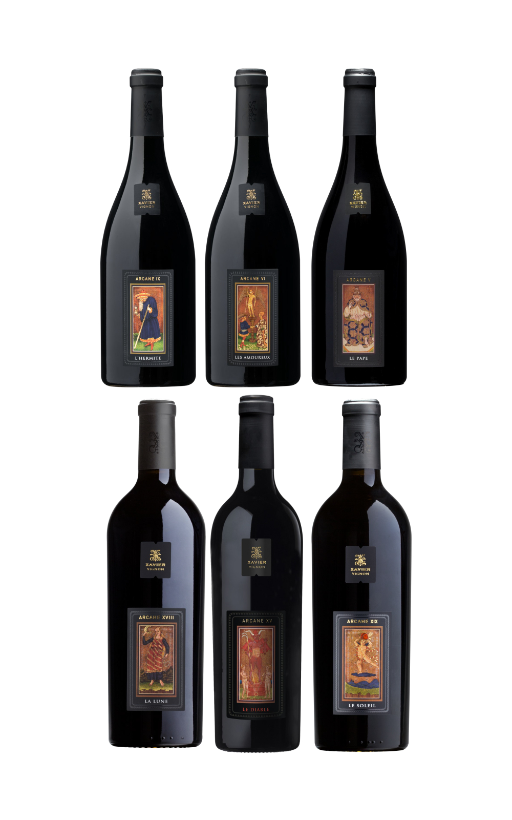 莊主以宏觀的角度,擺脫AOC法規的規範,直接正視葡萄的本質。只在無數個偶然同時發生時,他心中燃燒的創作欲望,才能催生出"Arcane"「塔羅牌組系列」。因此包括莊主札維耶(Xavier)在內,沒有人知道塔羅牌全系列何時才能全數完成,也完全沒有任何順序可言。成套收集方能體會他的天外奇想。每款都獲得羅伯.帕克(Robert Parker)高分掛保證,每款都能打破您對葡萄酒的傳統認識!