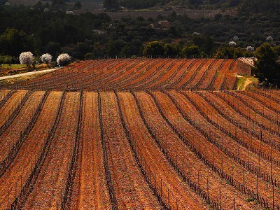 山坡上海拔700-800公尺的葡萄園,栽種模式宛如一階一階的梯形,坐落在Serra de la Llena山腳下,鄰近普里奧拉(Priorat)與Serra del Montsant的邊界。山脈的存在,讓地形成了這兒的優勢之一,阻擋了強勁的風勢,將上大陸型與地中海氣候的交錯。土壤更是葡萄園的特色,豐富的礫石帶優異排水性,卻讓葡萄藤在地層中,汲取必需的水分。稀少的降雨與結構優異的土壤,非常適合釀酒葡萄的栽植。高海拔的另一個優點,紫外線強度影響果皮的厚度,增加前花青素與多酚物質的成熟度,更保有果實中的天然酸度。